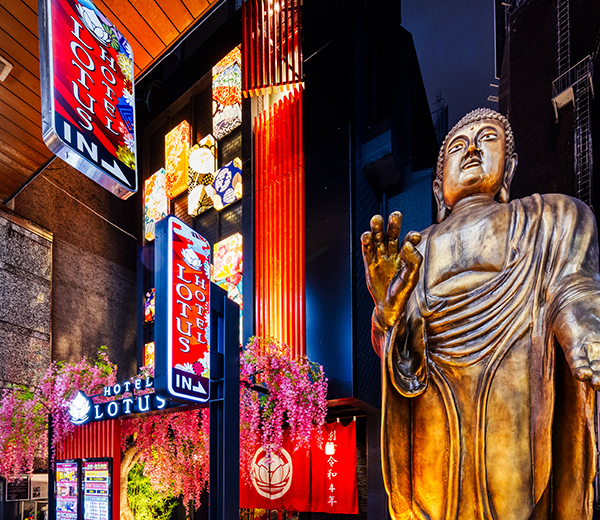ホテルロータス 梅田店は、蓮をモチーフにしたホテル。