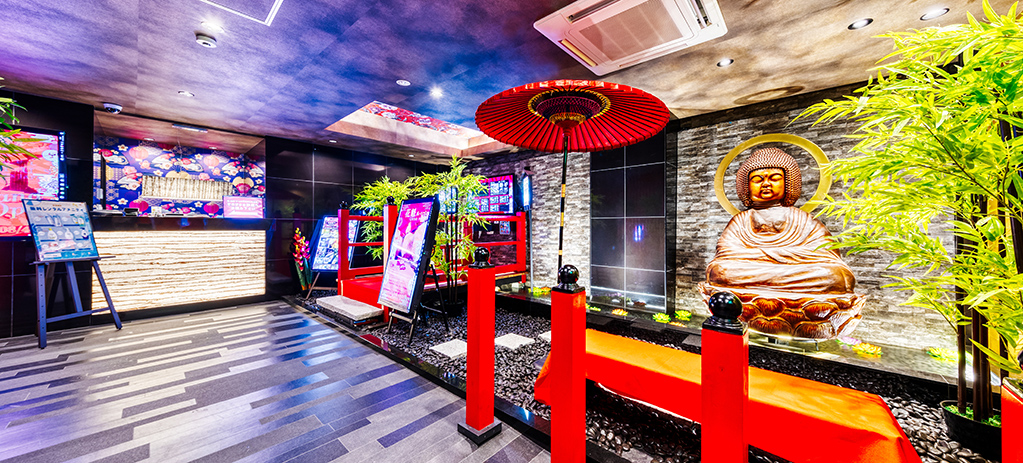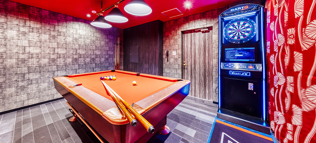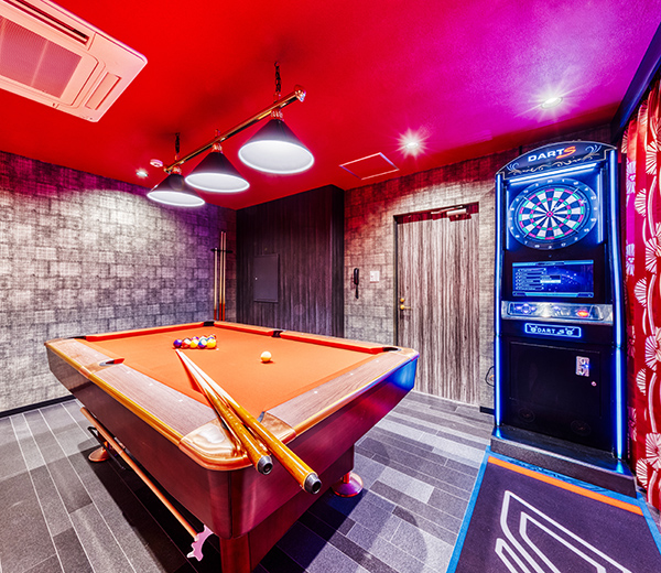 “ゴージャスモダン”をテーマに合わせて花魁衣装や浴衣をご用意。 1Fには、ビリヤード、ダーツ、3Fには卓球、カラオケ