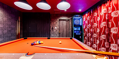 1Fにはビリヤードやダーツ、3Fには卓球&カラオケシアタールーム、5Fには貸切露天風呂など遊び心満載のエンターテイメントホテルです。※ご利用無料、要予約